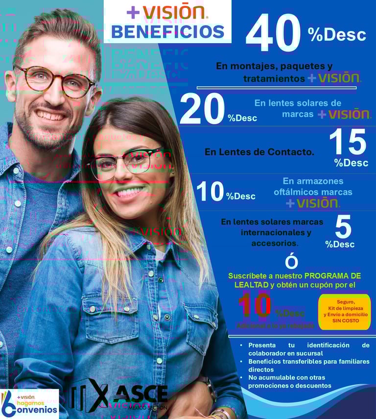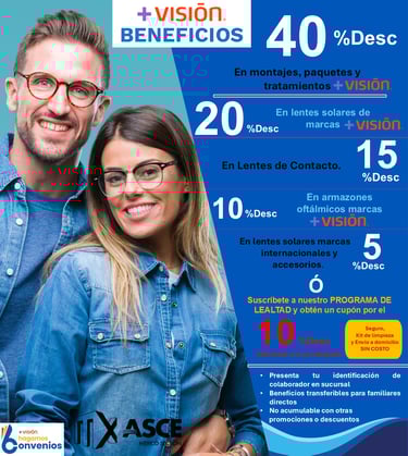 A través de esta alianza, nuestros miembros pueden acceder a descuentos especiales en tratamientos, armazones, lentes solares y lentes de contacto, ampliando los beneficios en servicios de salud visual para ellos y sus familias.